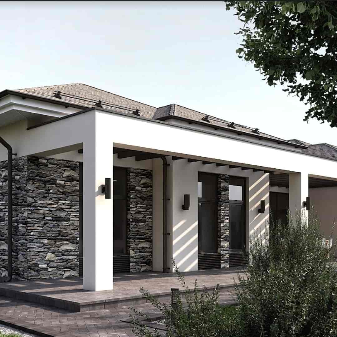 В доме на фото нужно было сделать так, чтобы архитектурный элемент - фриз, опирающийся на колонны, был и элегантным, и не тяжелым, и обладал высокой несущей способностью, потому что к Pin Up крепится кровля навеса террасы и опирается основная кровля дома.