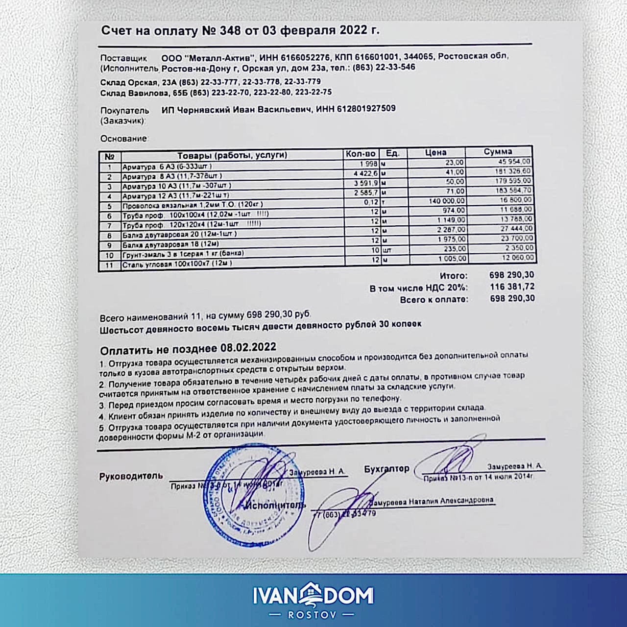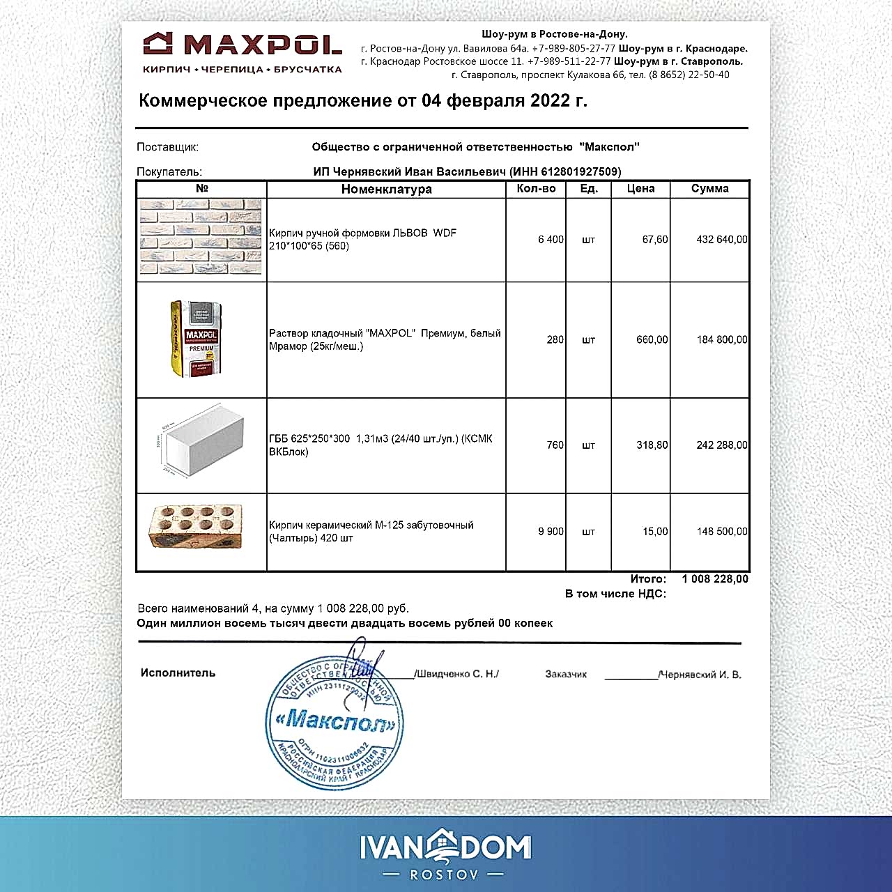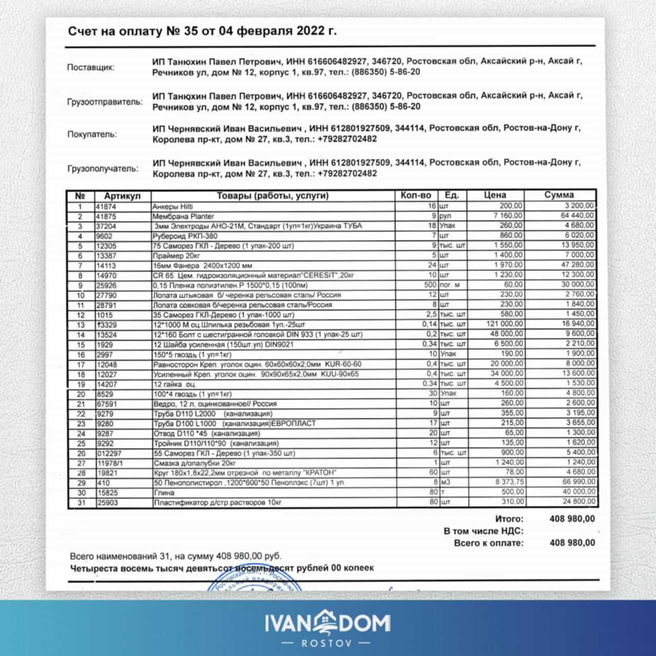 В карусели фото счетов на 86% суммы стройматериалов для этого дома, для его постройки по Варианту 1. Чтобы получить полную стоимость строительства, нужно добавить расходы аренду строительной техники и оплату рабочим-строителям. Которые построят этот дом, вручную собрав по «кирпичику», в прямом смысле слова - 112 тонн стройматериалов (без учёта бетона) в единую конструкцию.