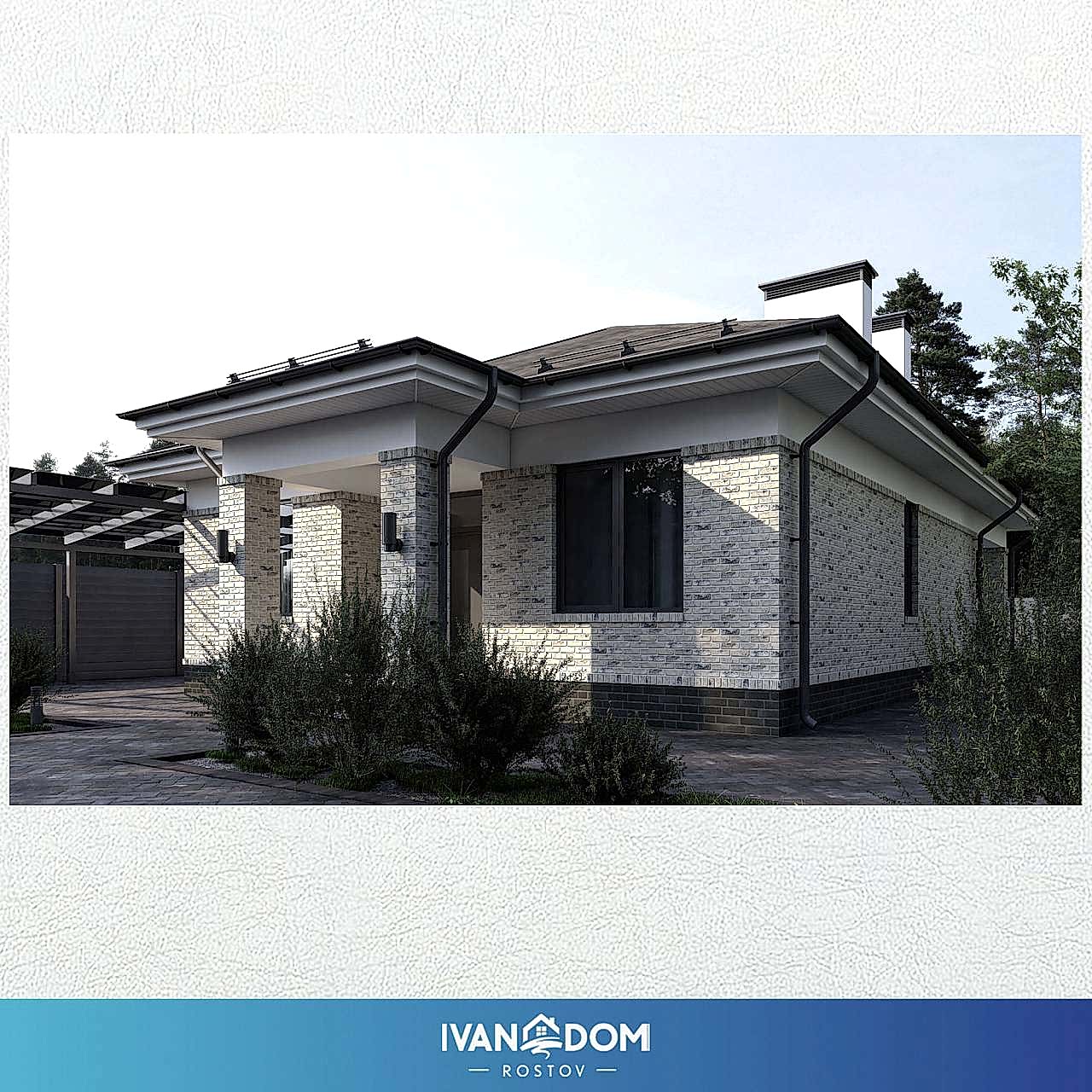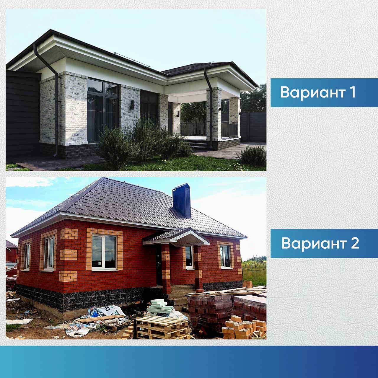 Он торжественно встречает элегантной террасой на входе. На его площади 97 м2 все подчинено комфорту и законам эргономики. 2-я терраса, сзади дома в 17м2, создаёт позитивные эмоции от отдыха на свежем воздухе. На фасадах использован кирпич ручной формовки, имитирующий старинный своей Pin Up и патиной поверхности, хорошо сочетаясь с декоративной штукатуркой. Для оконных рам и водосточной системы кровли выбран графитный насыщенный цвет, подчеркивающий гармоничные пропорции дома.