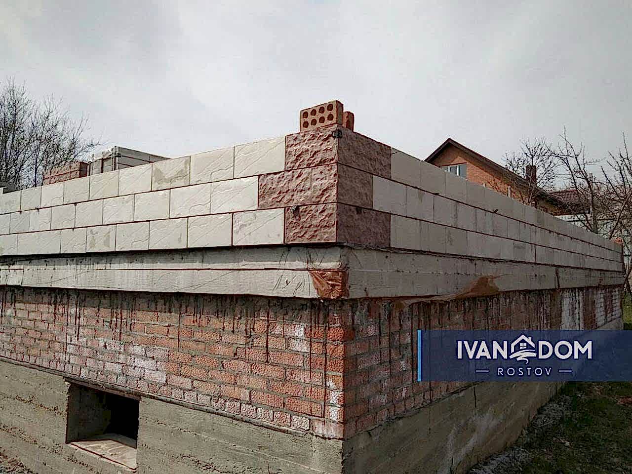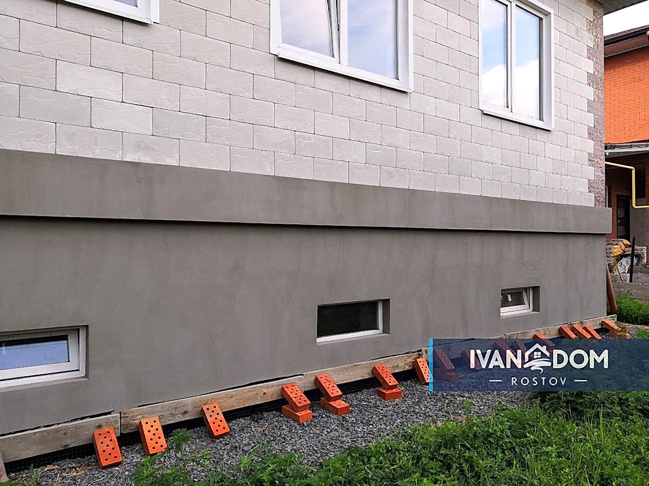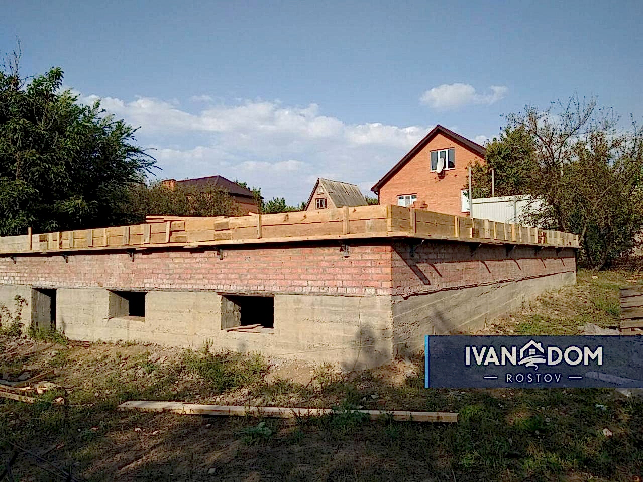 В 2016г. сделал фундамент и цокольный этаж для 2-х этажного дома. Затем, через несколько лет, дошла очередь до постройки дома. Обратился к вам по рекомендации своего знакомого. Достаточно неожиданными стали результаты ознакомления с проектом и осмотр фундамента. Оказалось, что нужно не начинать строить дом, а решить сначала проблемы: непригодная к эксплуатации плита основания пола 1эт., слабое армирование фундамента, значительные отклонения в геометрических размерах стен (до 12 см!), развалившийся кирпич на цоколе, отсутствие гидроизоляции и теплоизоляции цоколя. После долгих обсуждений и консультаций, согласились с предложением, что нужно произвести демонтаж элементов, и сделать все заново. Так же, согласились на полную переделку проекта, от второго этажа решили отказаться, чтобы не перегружать слабый фундамент. И дом решили строить из фибропенобетона, а не из кирпича. Полностью изменилась планировка дома. Начали работы с демонтажа монолитной ж Убрали просевший чернозем из под неё, засыпали щебень, утрамбовали. Залили по периметру ж Он так же помог выровнять стены. Только после этого приступили к возведению стен. Сделали коробку дома, электрику, сантехнику, отопление. Поштукатурили и сделали чистовую стяжку.