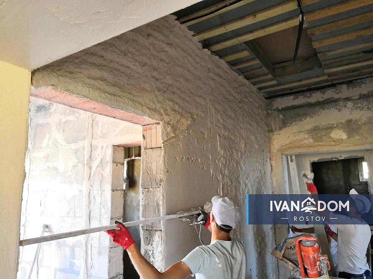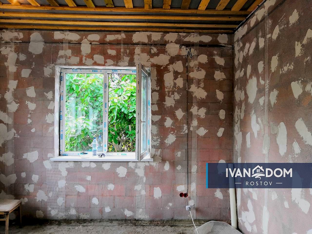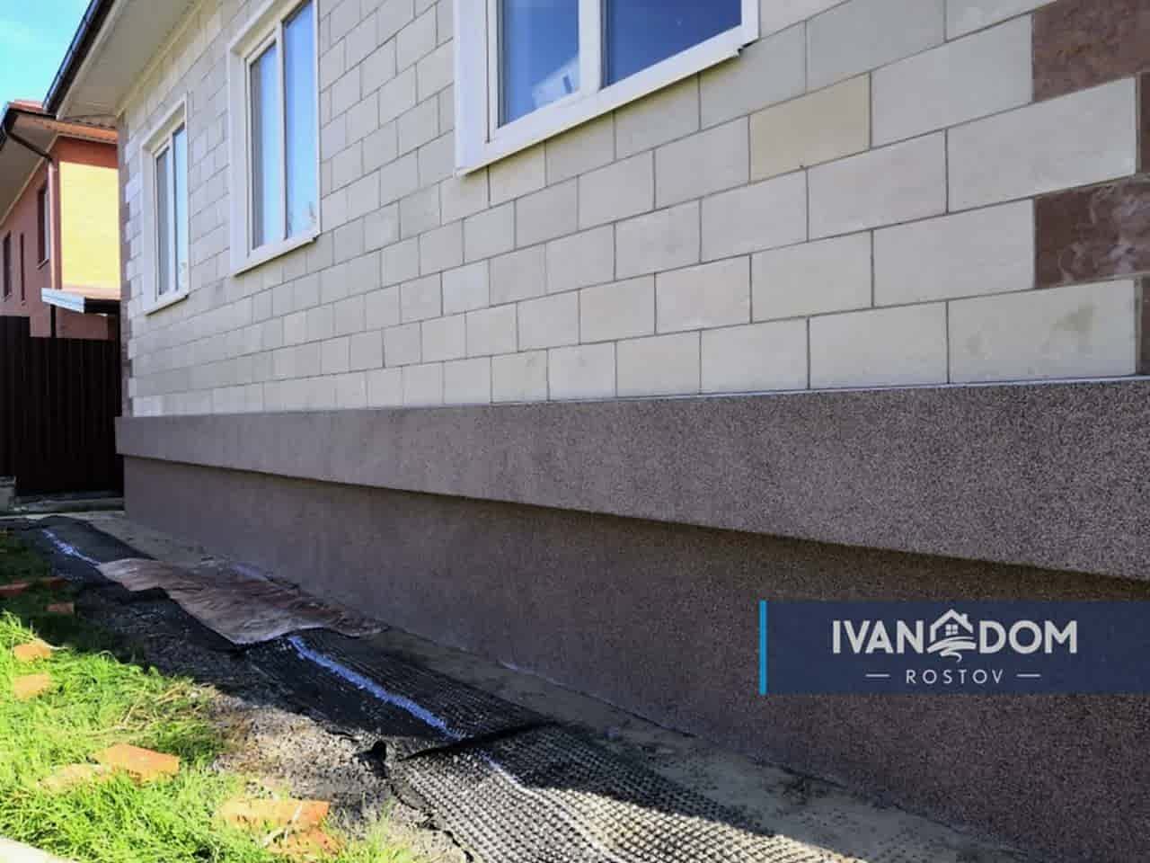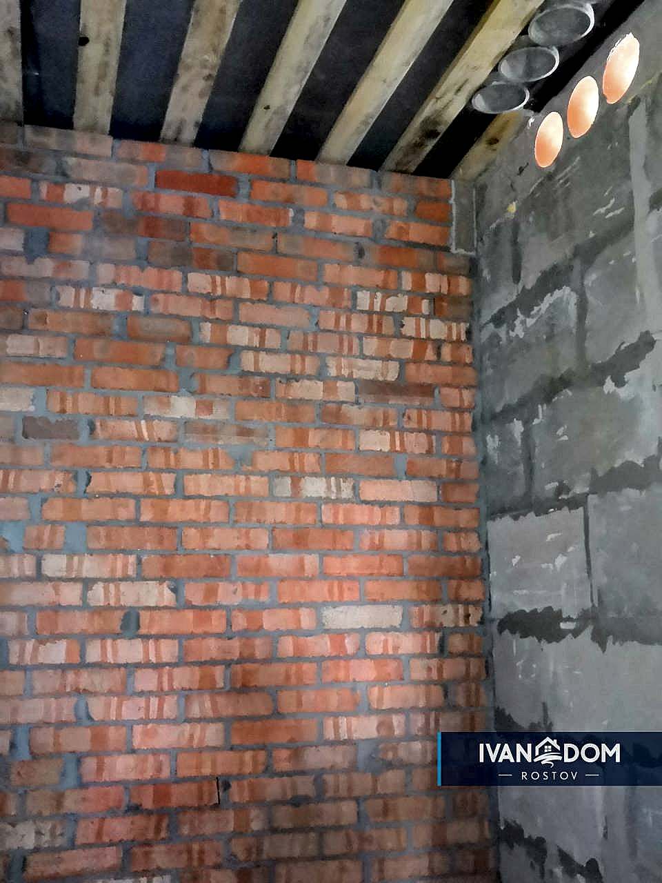 В 2016г. сделал фундамент и цокольный этаж для 2-х этажного дома. Затем, через несколько лет, дошла очередь до постройки дома. Обратился к вам по рекомендации своего знакомого. Достаточно неожиданными стали результаты ознакомления с проектом и осмотр фундамента. Оказалось, что нужно не начинать строить дом, а решить сначала проблемы: непригодная к эксплуатации плита основания пола 1эт., слабое армирование фундамента, значительные отклонения в геометрических размерах стен (до 12 см!), развалившийся кирпич на цоколе, отсутствие гидроизоляции и теплоизоляции цоколя. После долгих обсуждений и консультаций, согласились с предложением, что нужно произвести демонтаж элементов, и сделать все заново. Так же, согласились на полную переделку проекта, от второго этажа решили отказаться, чтобы не перегружать слабый фундамент. И дом решили строить из фибропенобетона, а не из кирпича. Полностью изменилась планировка дома. Начали работы с демонтажа монолитной ж Убрали просевший чернозем из под неё, засыпали щебень, утрамбовали. Залили по периметру ж Он так же помог выровнять стены. Только после этого приступили к возведению стен. Сделали коробку дома, электрику, сантехнику, отопление. Поштукатурили и сделали чистовую стяжку.