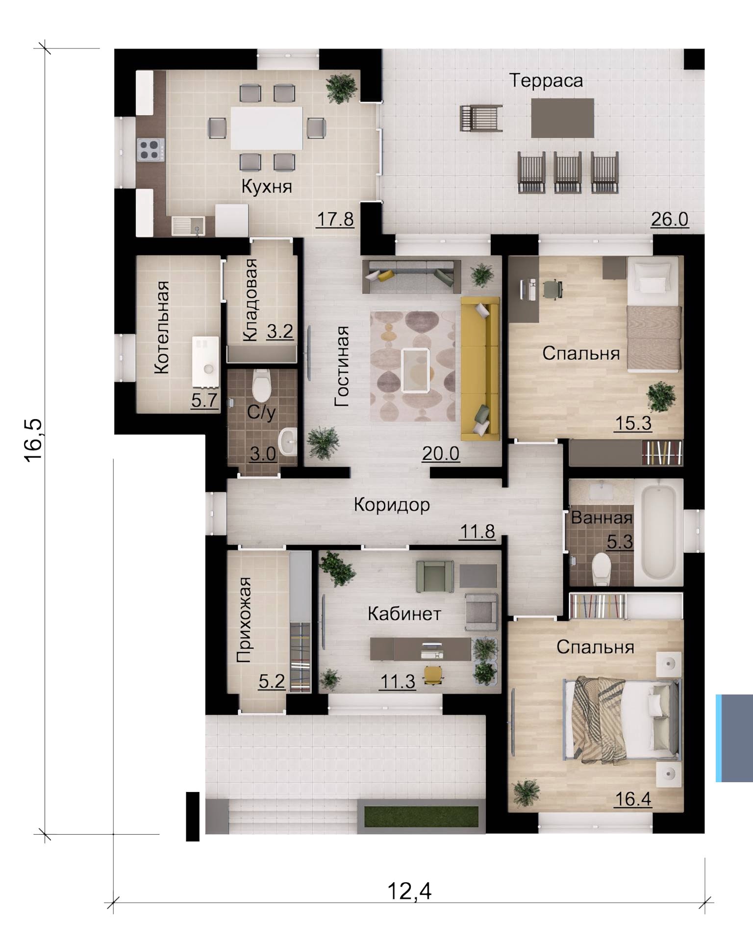 Точная стоимость строительства одноэтажного дома рассчитывается после получения информации о земельном участке, его Pin Up к началу строительных работ, и выбранных строительных материалах.