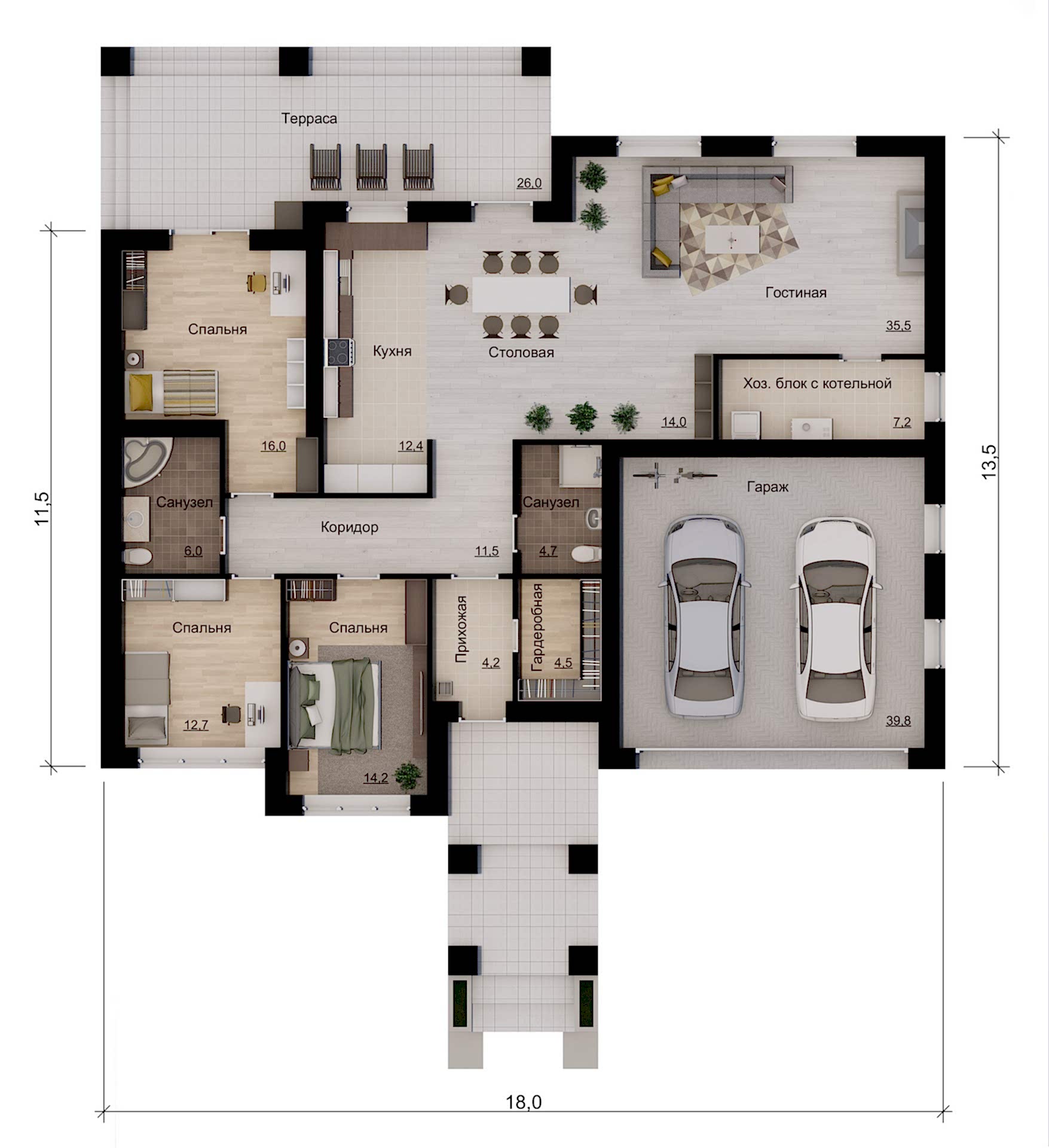 Эффектная, роскошная и невероятно удобная - эта загородная вилла способна растопить сердце самого требовательного заказчика. Оптимальнаяплощадь Ауэзова, 63 батыра, 123 грамотное зонирование позволяют разместить с Pin Up комфортом и большую семью, и гостей. Эмоции от жизни в таком доме переполняют еще на стадии адаптирования проекта под конкретные пожелания - настолько он выверен и изящен в каждой черте. Подойдет для тех, кто ищет проекты одноэтажных домов с террасой и гаражом.