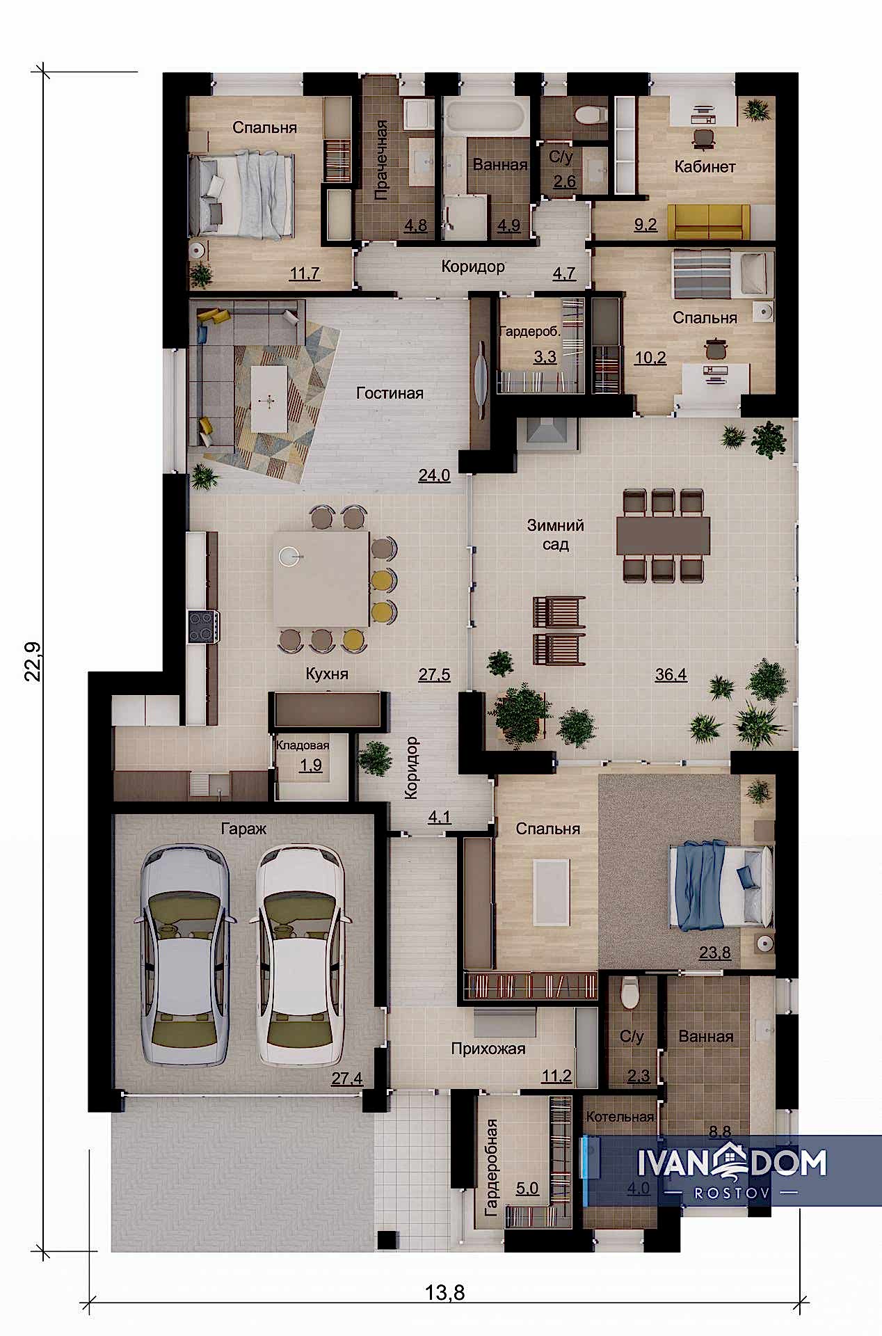 Кабинет, просторная гостиная, совмещенная с пространством кухни с видом на тропическое буйство зимнего сада - звучит, как описание картинки из дорогого Pin Up Но эта мечта вполне может стать вашим домом в самое ближайшее время!