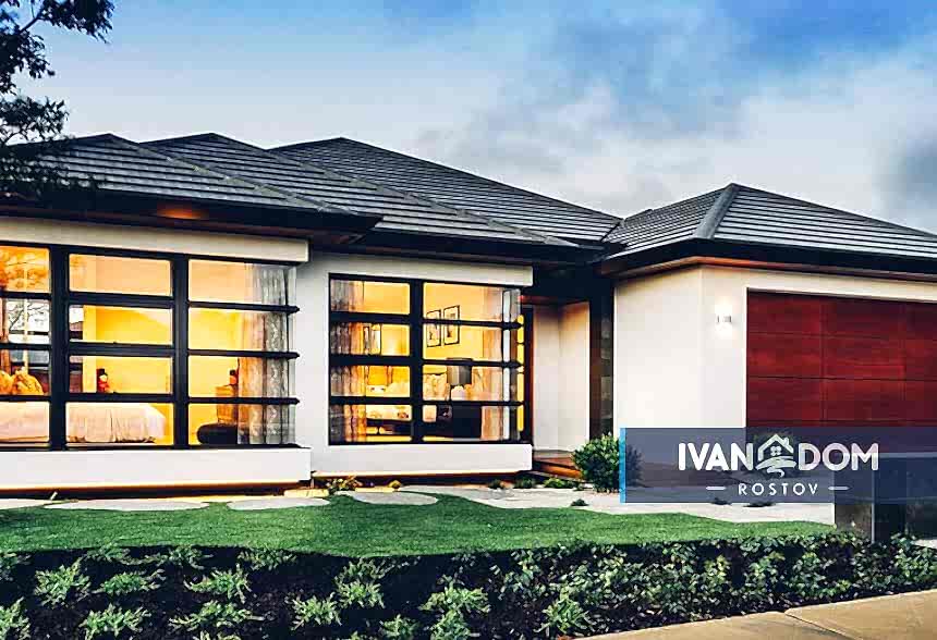 Этот проект подойдет искателям эстетики простора и свободы планировок. Его стилистику команда IVAN DOM определяет как “современная неоклассика”. Одноэтажный дом с гаражом на два автомобиля рассчитан на комфортное проживание большой гостеприимной семьи. Этот проект выбирают за беспрецедентный комфорт, с которым организовано его внутреннее пространство. Обратите на него внимание, если ищете проекты одноэтажных домов с террасой и гаражом.